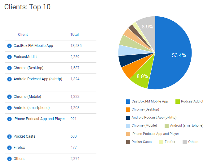 A maioria dos serviços gratuitos vai exibir estatísticas básicas. O Blubrry, por exemplo, exibe algumas estatísticas bem interessantes.