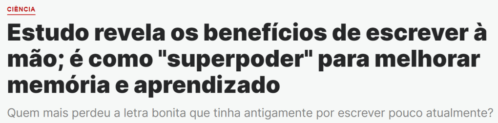 >>> LEIA AQUI: ESTUDO REVELA OS BENEFÍCIOS DE ESCREVER À MÃO <<<